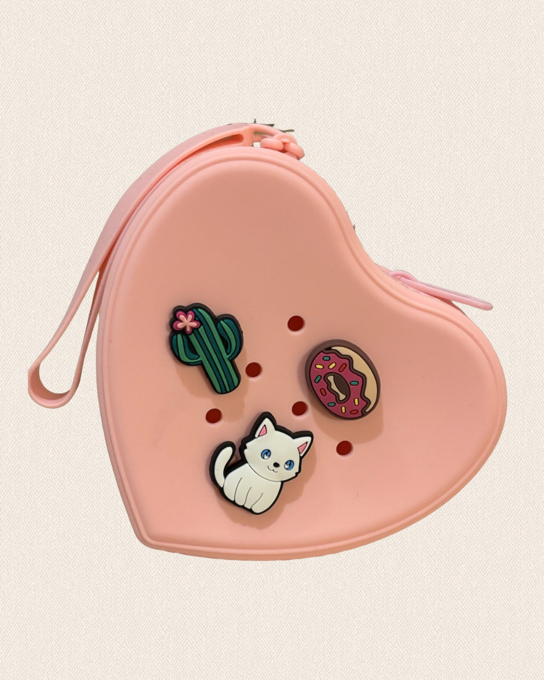 Cette pochette à personnaliser en forme de cœur est idéale pour les enfants souhaitant exprimer leur style unique.